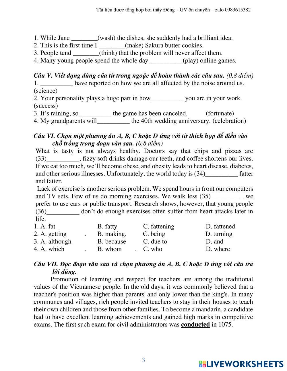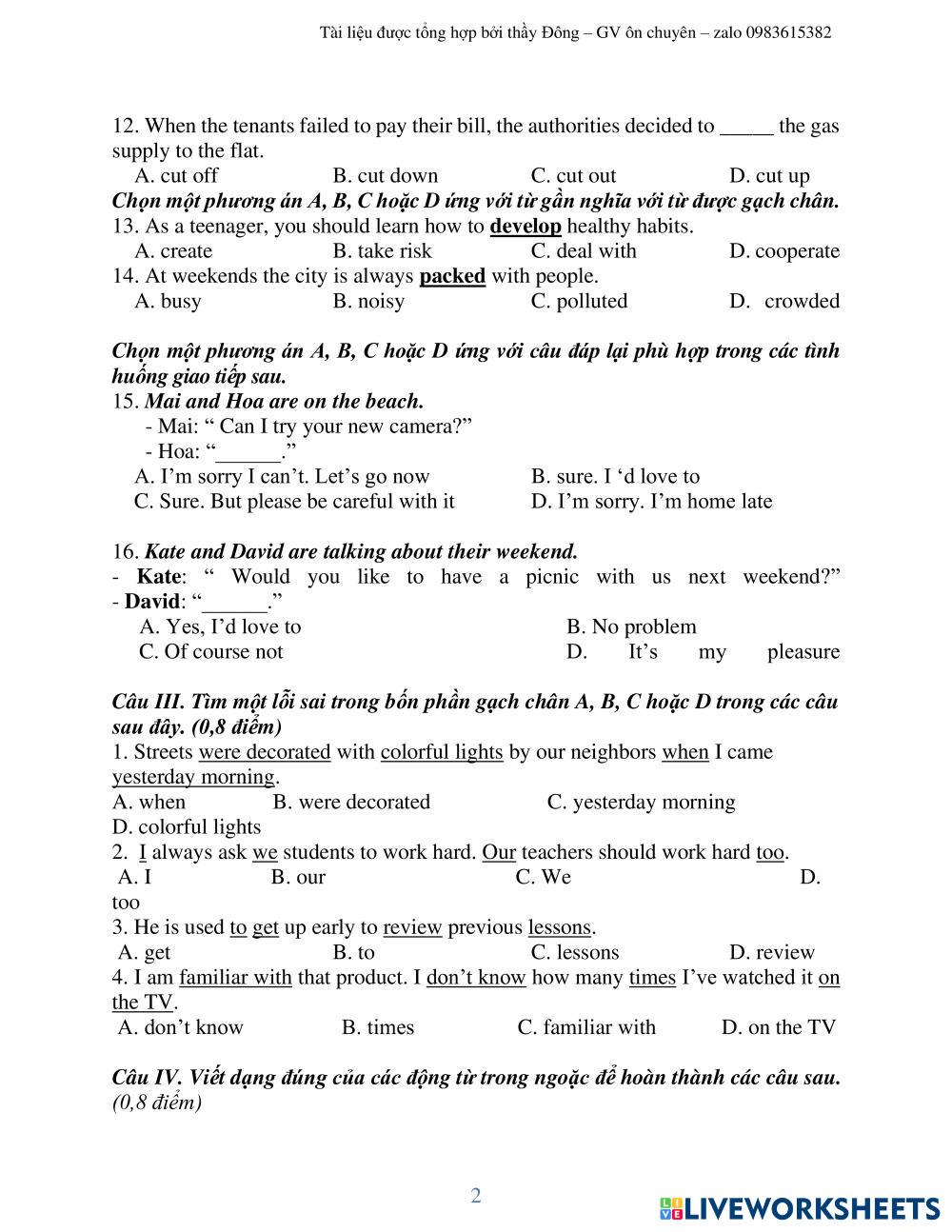 Created byNguyễn Xuân Đông english test Age 12-17 level: 9 Vietnamese Author's Instructions My Google Classroom Courses × 0 classes selected (0 students total) Quick Access Select all classes (0 classes) All Classes Loading courses... Cancel Share Share to selected Course __COURSE_NAME__ __STUDENT_NAME__ (__STUDENT_EMAIL__) Đề vào 10 THCS Hi Cương Phú Thọ Download Worksheet Validation Check my answers Emails my answers to my teacher Full name Group/level School subject Teacher's email or key code Close Submit Validating worksheet... (12) Your answers have been sent to your teacher. Good luck! OK We encountered an error submitting your answers. Please try again. OK Advertisement | Go Ad Free Created byNguyễn Xuân Đông english test Age 12-17 level: 9 Vietnamese Author's Instructions