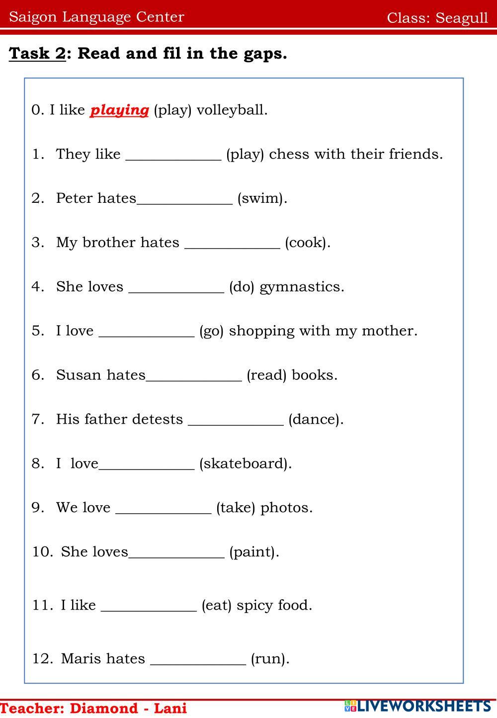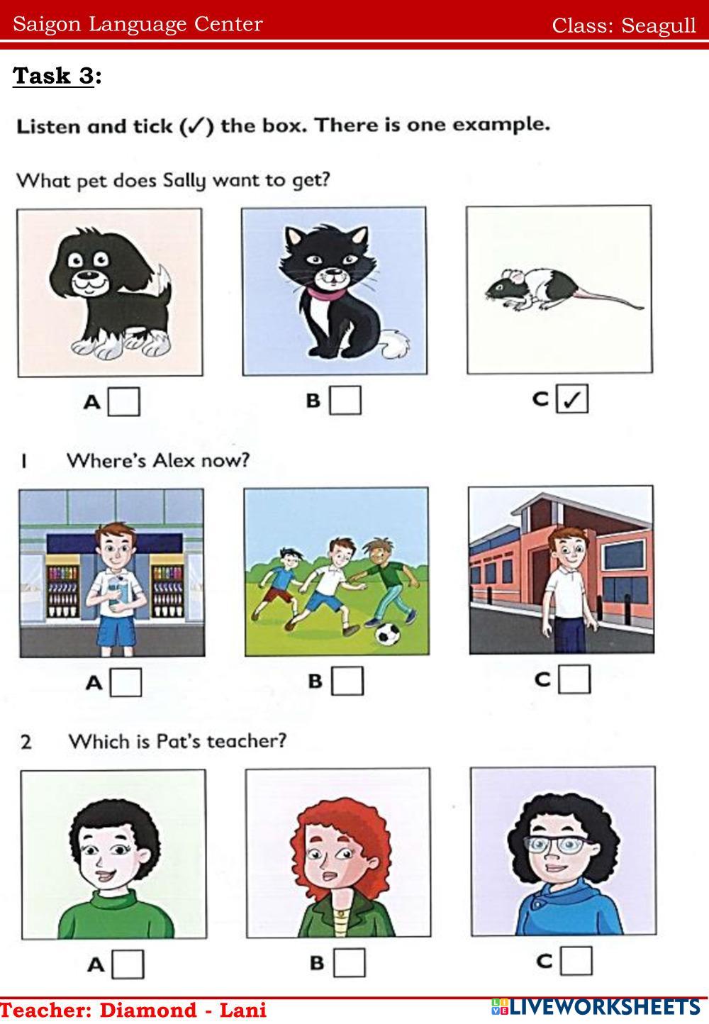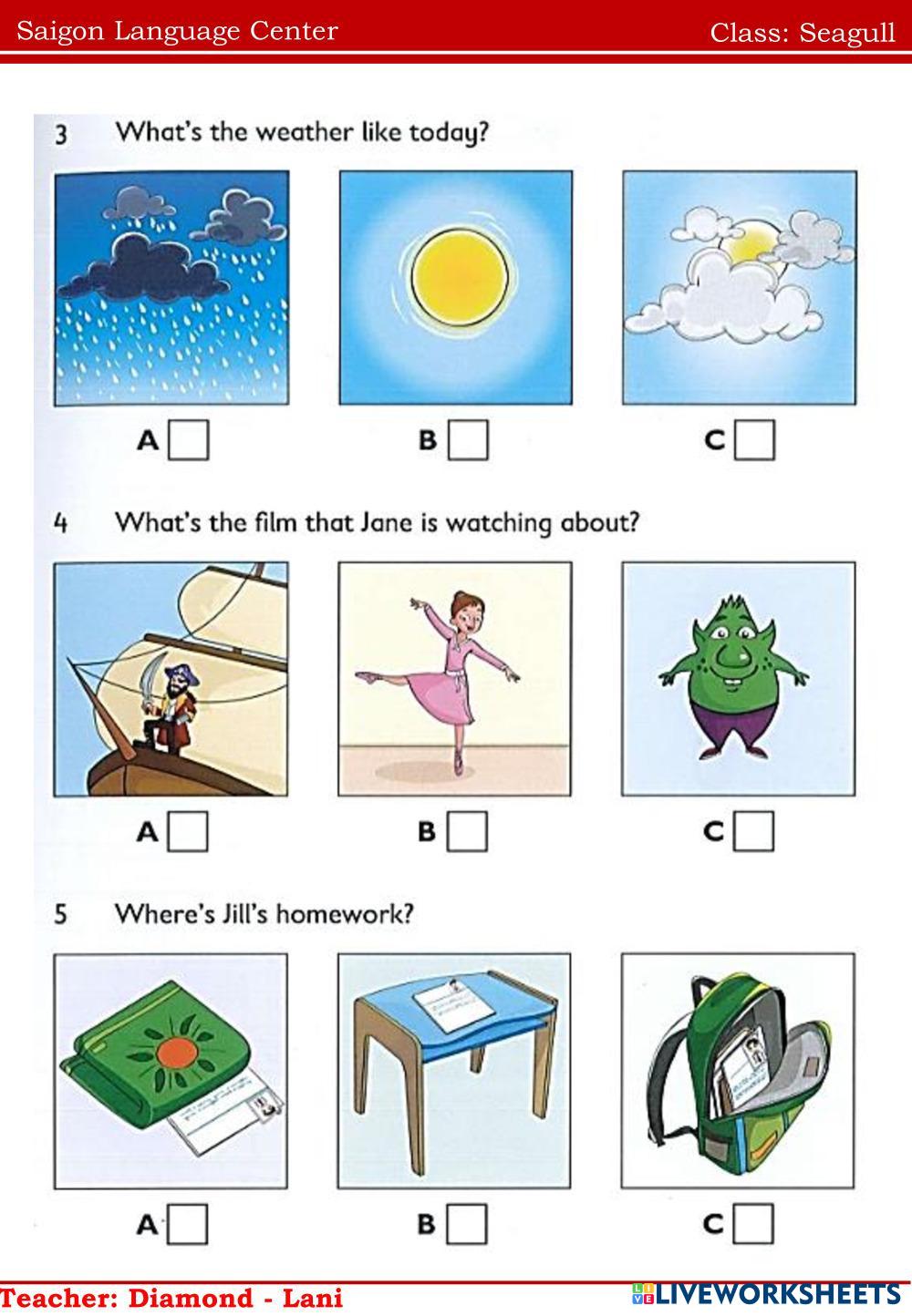 Created byNguyễn Thị ThanhThao english english Age 10-16 level: ffs3 Vietnamese Author's Instructions 1 My Google Classroom Courses × 0 classes selected (0 students total) Quick Access Select all classes (0 classes) All Classes Loading courses... Cancel Share Share to selected Course __COURSE_NAME__ __STUDENT_NAME__ (__STUDENT_EMAIL__) Seagull Download Worksheet Validation Check my answers Emails my answers to my teacher Full name Group/level School subject Teacher's email or key code Close Submit Validating worksheet... (12) Your answers have been sent to your teacher. Good luck! OK We encountered an error submitting your answers. Please try again. OK Advertisement | Go Ad Free Created byNguyễn Thị ThanhThao english english Age 10-16 level: ffs3 Vietnamese Author's Instructions 1