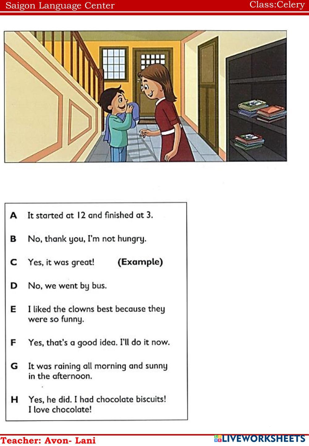 Created byNguyễn Thị ThanhThao english e Age 10-14 level: ffs1 Vietnamese Author's Instructions e My Google Classroom Courses × 0 classes selected (0 students total) Quick Access Select all classes (0 classes) All Classes Loading courses... Cancel Share Share to selected Course __COURSE_NAME__ __STUDENT_NAME__ (__STUDENT_EMAIL__) Celery Download Worksheet Validation Check my answers Emails my answers to my teacher Full name Group/level School subject Teacher's email or key code Close Submit Validating worksheet... (12) Your answers have been sent to your teacher. Good luck! OK We encountered an error submitting your answers. Please try again. OK Advertisement | Go Ad Free Created byNguyễn Thị ThanhThao english e Age 10-14 level: ffs1 Vietnamese Author's Instructions e