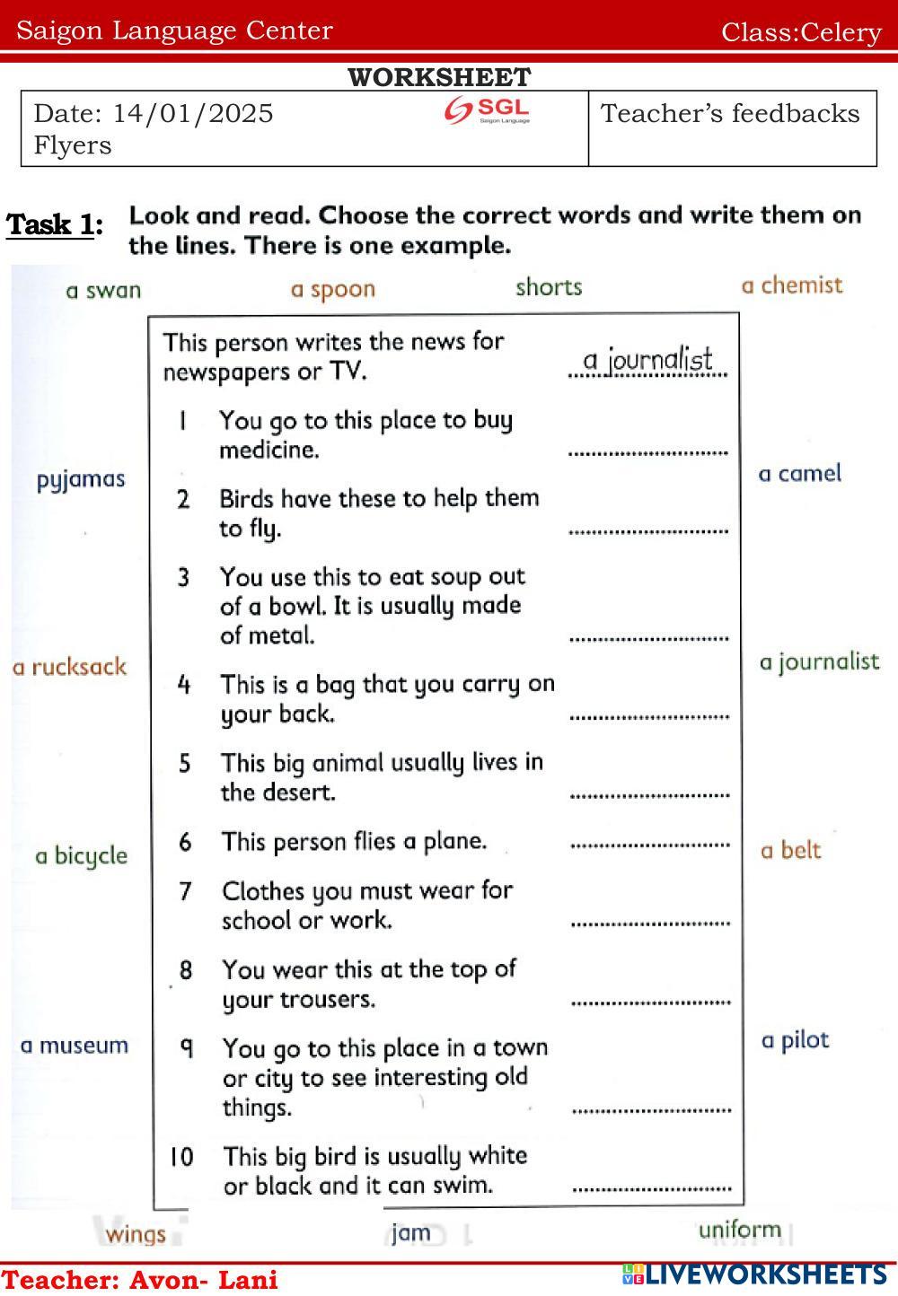 Created byNguyễn Thị ThanhThao english english Age 10-15 level: ffs1 Vietnamese Author's Instructions e My Google Classroom Courses × 0 classes selected (0 students total) Quick Access Select all classes (0 classes) All Classes Loading courses... Cancel Share Share to selected Course __COURSE_NAME__ __STUDENT_NAME__ (__STUDENT_EMAIL__) Celery 123 Download Worksheet Validation Check my answers Emails my answers to my teacher Full name Group/level School subject Teacher's email or key code Close Submit Validating worksheet... (12) Your answers have been sent to your teacher. Good luck! OK We encountered an error submitting your answers. Please try again. OK Advertisement | Go Ad Free Created byNguyễn Thị ThanhThao english english Age 10-15 level: ffs1 Vietnamese Author's Instructions e