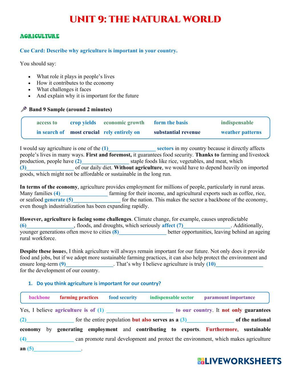 Unit 9 - The natural world - Speaking Q9-11