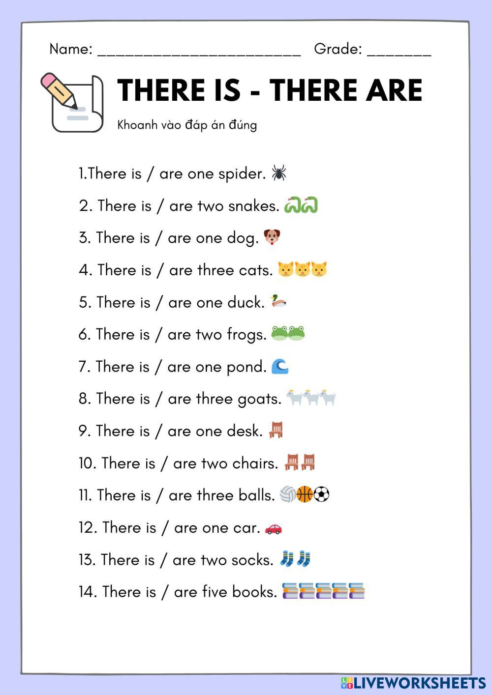 Created byGiang ESL Vietnamese A1 Vocabulary Vietnamese Author's Instructions Chọn đáp án đúng My Google Classroom Courses × 0 classes selected (0 students total) Quick Access Select all classes (0 classes) All Classes Loading courses... Cancel Share Share to selected Course __COURSE_NAME__ __STUDENT_NAME__ (__STUDENT_EMAIL__) There is- There are Download Worksheet Validation Check my answers Emails my answers to my teacher Full name Group/level School subject Teacher's email or key code Close Submit Validating worksheet... (12) Your answers have been sent to your teacher. Good luck! OK We encountered an error submitting your answers. Please try again. OK Advertisement | Go Ad Free Created byGiang ESL Vietnamese A1 Vocabulary Vietnamese Author's Instructions Chọn đáp án đúng Explore Worksheets MRVT - Môi trường - BT1 ESL A1 MRVT - Môi trường - BT1 Vocabulary - ESL Kéo thả điền ESL A1 điền Vocabulary - ESL điền 123 ESL A1 123 Vocabulary - ESL 123 TU VUNG ESL A1 TU VUNG Vocabulary - ESL 123