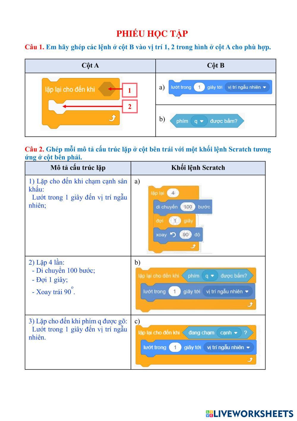 Created by Phanphuongtht1 Ghép cột Ghép cột Age 10-14 level: K5 Vietnamese Author's Instructions My Google Classroom Courses × 0 classes selected (0 students total) Quick Access Select all classes (0 classes) All Classes Loading courses... Cancel Share Share to selected Course __COURSE_NAME__ __STUDENT_NAME__ (__STUDENT_EMAIL__) Bài 11. Cấu trúc lặp (số lần chưa biết trước) Download Worksheet Validation Check my answers Emails my answers to my teacher Full name Group/level School subject Teacher's email or key code Close Submit Validating worksheet... (12) Your answers have been sent to your teacher. Good luck! OK We encountered an error submitting your answers. Please try again. OK Advertisement | Go Ad Free Created by Phanphuongtht1 Ghép cột Ghép cột Age 10-14 level: K5 Vietnamese Author's Instructions