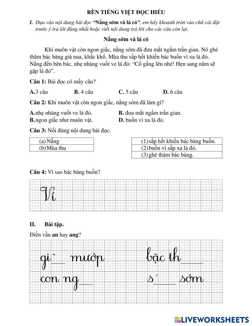 Created byĐỗ Nguyễn Thảo My lớp 1 Toán Age 3-12 level: 1 Vietnamese Author's Instructions My Google Classroom Courses × 0 classes selected (0 students total) Quick Access Select all classes (0 classes) All Classes Loading courses... Cancel Share Share to selected Course __COURSE_NAME__ __STUDENT_NAME__ (__STUDENT_EMAIL__) Bài tập cuối tuần 15 lớp 1.4 Download Worksheet Validation Check my answers Emails my answers to my teacher Full name Group/level School subject Teacher's email or key code Close Submit Validating worksheet... (12) Your answers have been sent to your teacher. Good luck! OK We encountered an error submitting your answers. Please try again. OK Advertisement | Go Ad Free Created byĐỗ Nguyễn Thảo My lớp 1 Toán Age 3-12 level: 1 Vietnamese Author's Instructions