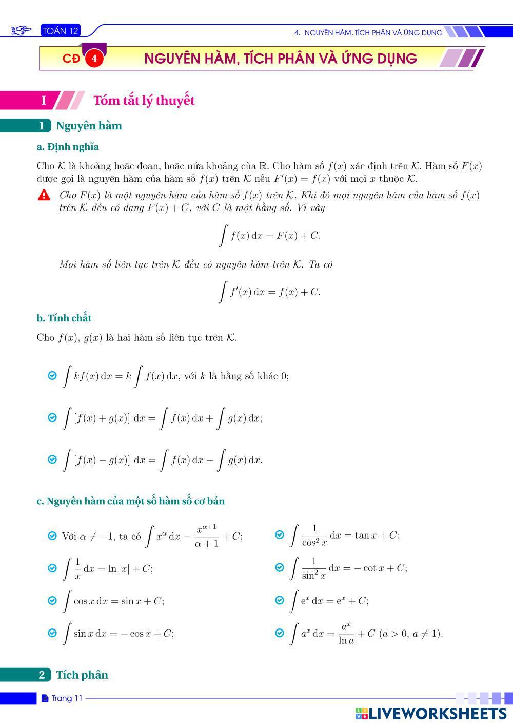 Created byLê Thị Hồng Vân Math High School 12th grade Algebra Vietnamese Author's Instructions Các em có thể đọc lại nhé My Google Classroom Courses × 0 classes selected (0 students total) Quick Access Select all classes (0 classes) All Classes Loading courses... Cancel Share Share to selected Course __COURSE_NAME__ __STUDENT_NAME__ (__STUDENT_EMAIL__) TÓM TẮT LÝ THUYẾT CHƯƠNG 4- NGUYÊN HÀM & TÍCH PHÂN Download Worksheet Validation Check my answers Emails my answers to my teacher Full name Group/level School subject Teacher's email or key code Close Submit Validating worksheet... (12) Your answers have been sent to your teacher. Good luck! OK We encountered an error submitting your answers. Please try again. OK Advertisement | Go Ad Free Created byLê Thị Hồng Vân Math High School 12th grade Algebra Vietnamese Author's Instructions Các em có thể đọc lại nhé Explore Worksheets GTLN và GTNN 1 Math 12th grade GTLN và GTNN 1 Algebra - Math Các em làm đề luyện tập nhé ĐƠN ĐIỆU VÀ CỰC TRỊ 1 Math 12th grade ĐƠN ĐIỆU VÀ CỰC TRỊ 1 Algebra - Math Các em làm đề luyện tập nhé ĐƠN ĐIỆU VÀ CỰC TRỊ 2 Math 12th grade ĐƠN ĐIỆU VÀ CỰC TRỊ 2 Algebra - Math Các em làm đề luyện tập nhé TÓM TẮT LÝ THUYẾT CHƯƠNG 1 Math 12th grade TÓM TẮT LÝ THUYẾT CHƯƠNG 1 Algebra - Math Các em có thể đọc lại nhé