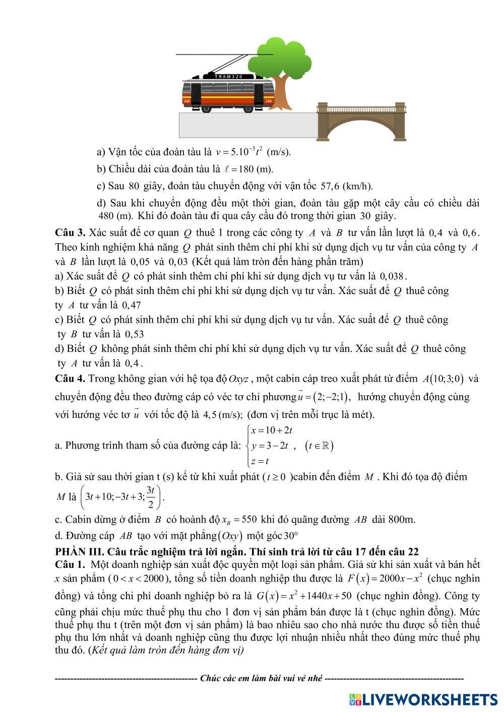 Created byLê Thị Hồng Vân Math High School 12th grade Algebra Vietnamese Author's Instructions Các em làm đề luyện tập nhé My Google Classroom Courses × 0 classes selected (0 students total) Quick Access Select all classes (0 classes) All Classes Loading courses... Cancel Share Share to selected Course __COURSE_NAME__ __STUDENT_NAME__ (__STUDENT_EMAIL__) ĐỀ THI THỬ THPT 02 Download Worksheet Validation Check my answers Emails my answers to my teacher Full name Group/level School subject Teacher's email or key code Close Submit Validating worksheet... (12) Your answers have been sent to your teacher. Good luck! OK We encountered an error submitting your answers. Please try again. OK Advertisement | Go Ad Free Created byLê Thị Hồng Vân Math High School 12th grade Algebra Vietnamese Author's Instructions Các em làm đề luyện tập nhé Explore Worksheets revision Math 12th grade revision Algebra - Math . ĐỀ THI THỬ THPT 03 Math 12th grade ĐỀ THI THỬ THPT 03 Algebra - Math Các em làm đè luyện tập nhé ĐỀ THI THỬ TNTHPT 1 Math 12th grade ĐỀ THI THỬ TNTHPT 1 Algebra - Math Các em làm đề luyện tập nhé Формулы первообразных Math 12th grade Формулы первообразных Algebra - Math Верные ответы отметьте галочками