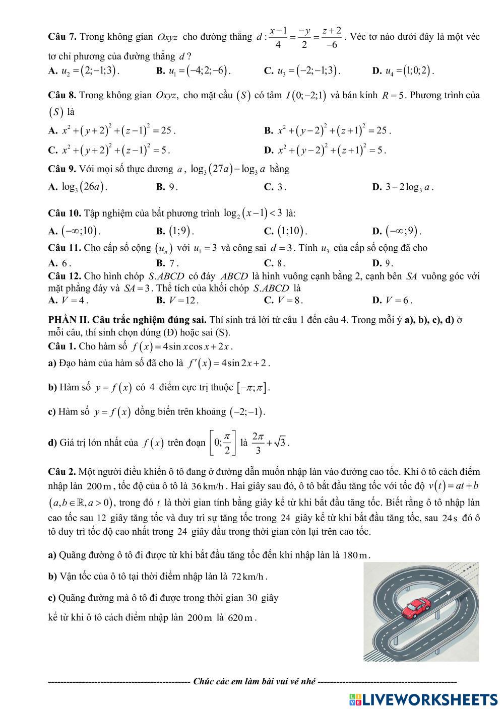 Created byLê Thị Hồng Vân Math High School 12th grade Algebra Vietnamese Author's Instructions Các em làm đề luyện tập nhé My Google Classroom Courses × 0 classes selected (0 students total) Quick Access Select all classes (0 classes) All Classes Loading courses... Cancel Share Share to selected Course __COURSE_NAME__ __STUDENT_NAME__ (__STUDENT_EMAIL__) ĐỀ THI THỬ THPT 05 Download Worksheet Validation Check my answers Emails my answers to my teacher Full name Group/level School subject Teacher's email or key code Close Submit Validating worksheet... (12) Your answers have been sent to your teacher. Good luck! OK We encountered an error submitting your answers. Please try again. OK Advertisement | Go Ad Free Created byLê Thị Hồng Vân Math High School 12th grade Algebra Vietnamese Author's Instructions Các em làm đề luyện tập nhé Explore Worksheets ضرب التعابير النسبية Math 12th grade ضرب التعابير النسبية Algebra - Math ؤ ÔN TẬP CHƯƠNG IV ĐỀ 2 Math 12th grade ÔN TẬP CHƯƠNG IV ĐỀ 2 Algebra - Math Các em làm đề luyện tập nhé ÔN TẬP CHƯƠNG IV ĐỀ 1 Math 12th grade ÔN TẬP CHƯƠNG IV ĐỀ 1 Algebra - Math Các em làm đề luyện tập nhé ÔN TẬP CHƯƠNG V ĐỀ 2 Math 12th grade ÔN TẬP CHƯƠNG V ĐỀ 2 Algebra - Math Các em làm đề luyện tập nhé