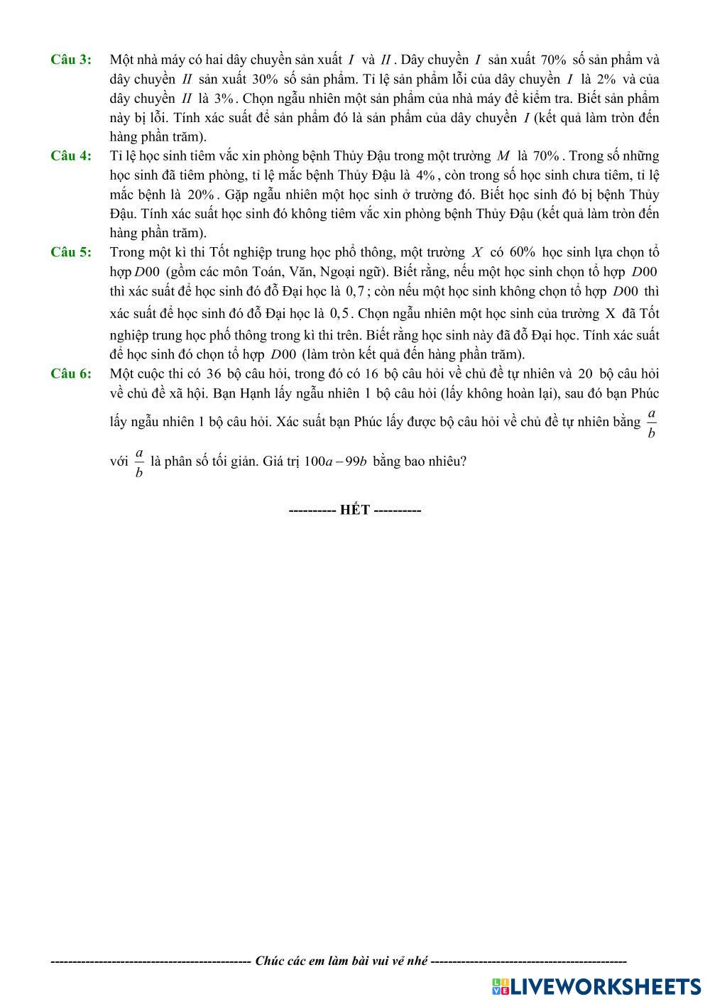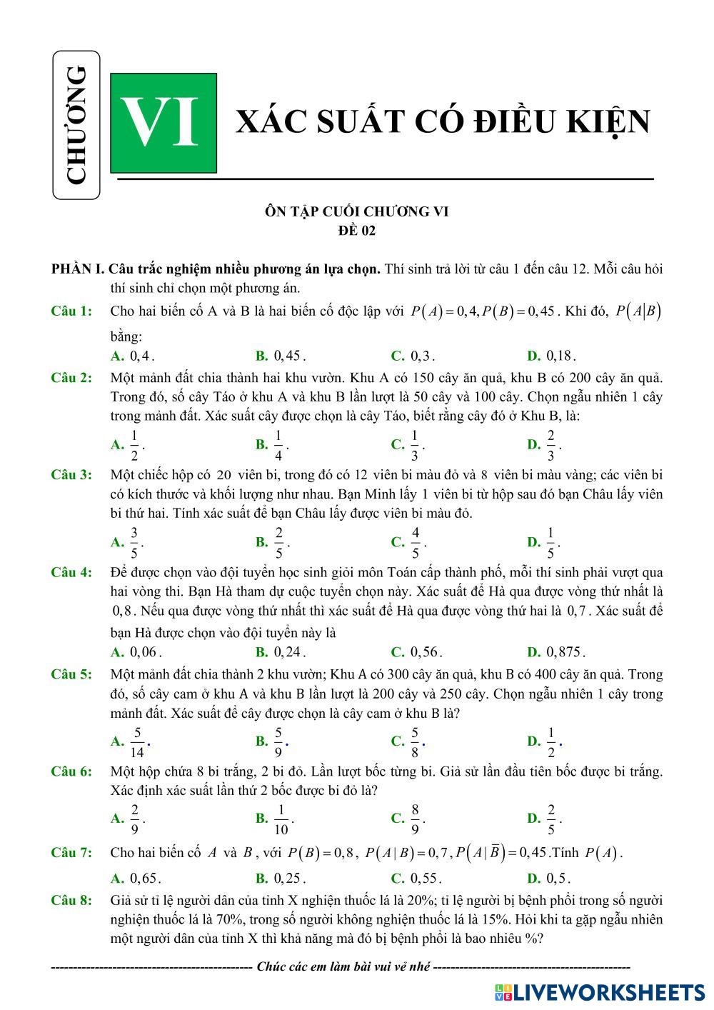 Created byLê Thị Hồng Vân Math High School 12th grade Algebra Vietnamese Author's Instructions Các em làm đề luyện tập nhé My Google Classroom Courses × 0 classes selected (0 students total) Quick Access Select all classes (0 classes) All Classes Loading courses... Cancel Share Share to selected Course __COURSE_NAME__ __STUDENT_NAME__ (__STUDENT_EMAIL__) ÔN TẬP CHƯƠNG VI ĐỀ 2 Download Worksheet Validation Check my answers Emails my answers to my teacher Full name Group/level School subject Teacher's email or key code Close Submit Validating worksheet... (12) Your answers have been sent to your teacher. Good luck! OK We encountered an error submitting your answers. Please try again. OK Advertisement | Go Ad Free Created byLê Thị Hồng Vân Math High School 12th grade Algebra Vietnamese Author's Instructions Các em làm đề luyện tập nhé Explore Worksheets ضرب التعابير النسبية Math 12th grade ضرب التعابير النسبية Algebra - Math ؤ ÔN TẬP CHƯƠNG IV ĐỀ 2 Math 12th grade ÔN TẬP CHƯƠNG IV ĐỀ 2 Algebra - Math Các em làm đề luyện tập nhé ÔN TẬP CHƯƠNG IV ĐỀ 1 Math 12th grade ÔN TẬP CHƯƠNG IV ĐỀ 1 Algebra - Math Các em làm đề luyện tập nhé ÔN TẬP CHƯƠNG V ĐỀ 2 Math 12th grade ÔN TẬP CHƯƠNG V ĐỀ 2 Algebra - Math Các em làm đề luyện tập nhé