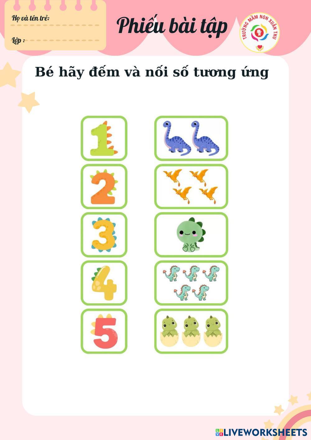 Created byNguyenthithuanmnxt Math Early Learning Pre-K Counting and Number Recognition Vietnamese Author's Instructions Bài tập nối số My Google Classroom Courses × 0 classes selected (0 students total) Quick Access Select all classes (0 classes) All Classes Loading courses... Cancel Share Share to selected Course __COURSE_NAME__ __STUDENT_NAME__ (__STUDENT_EMAIL__) Bài tập nối số Download Worksheet Validation Check my answers Emails my answers to my teacher Full name Group/level School subject Teacher's email or key code Close Submit Validating worksheet... (12) Your answers have been sent to your teacher. Good luck! OK We encountered an error submitting your answers. Please try again. OK Advertisement | Go Ad Free Created byNguyenthithuanmnxt Math Early Learning Pre-K Counting and Number Recognition Vietnamese Author's Instructions Bài tập nối số Explore Worksheets LKPD MATEMATIKA KELAS 3 SD Math Pre-K LKPD MATEMATIKA KELAS 3 SD Counting and Number Recognition - Math Kerjakan soal berikut Nhận thức: So sánh số lượng bằng nhau nhiều hơn ít hơn Math Pre-K Nhận thức: So sánh số lượng bằng nhau nhiều hơn ít hơn Counting and Number Recognition - Math trẻ thực hiện bài tập Numbers Pre-K Math Pre-K Numbers Pre-K Counting and Number Recognition - Math Draw a line Bài tập điền từ Math Pre-K Bài tập điền từ Counting and Number Recognition - Math Bài tập điền từ