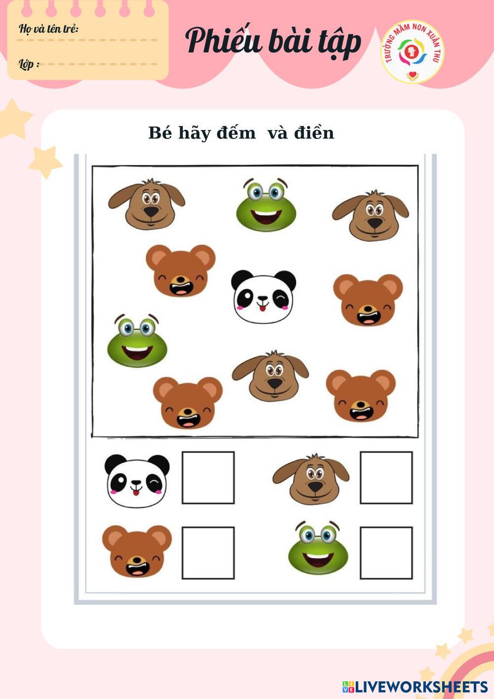 Created byNguyenthithuanmnxt Math Early Learning Pre-K Counting and Number Recognition Vietnamese Author's Instructions Bài tập điền từ My Google Classroom Courses × 0 classes selected (0 students total) Quick Access Select all classes (0 classes) All Classes Loading courses... Cancel Share Share to selected Course __COURSE_NAME__ __STUDENT_NAME__ (__STUDENT_EMAIL__) Bài tập điền từ Download Worksheet Validation Check my answers Emails my answers to my teacher Full name Group/level School subject Teacher's email or key code Close Submit Validating worksheet... (12) Your answers have been sent to your teacher. Good luck! OK We encountered an error submitting your answers. Please try again. OK Advertisement | Go Ad Free Created byNguyenthithuanmnxt Math Early Learning Pre-K Counting and Number Recognition Vietnamese Author's Instructions Bài tập điền từ Explore Worksheets LKPD MATEMATIKA KELAS 3 SD Math Pre-K LKPD MATEMATIKA KELAS 3 SD Counting and Number Recognition - Math Kerjakan soal berikut Nhận thức: So sánh số lượng bằng nhau nhiều hơn ít hơn Math Pre-K Nhận thức: So sánh số lượng bằng nhau nhiều hơn ít hơn Counting and Number Recognition - Math trẻ thực hiện bài tập Numbers Pre-K Math Pre-K Numbers Pre-K Counting and Number Recognition - Math Draw a line Bài tập nối số Math Pre-K Bài tập nối số Counting and Number Recognition - Math Bài tập nối số