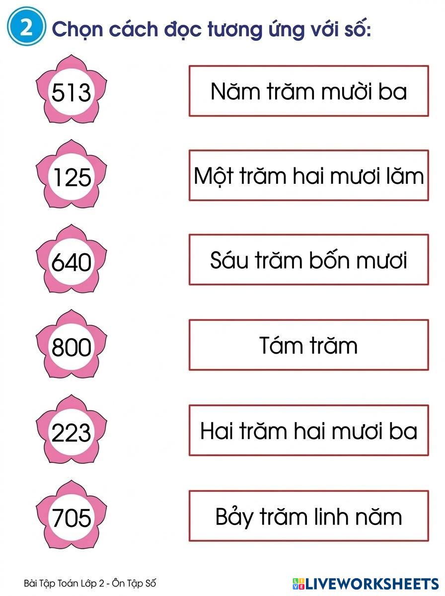 Created by Chankyan1107- Math Elementary 2nd grade Place Value Vietnamese Author's Instructions Hãy kéo thả cách đọc tương ứng với các số My Google Classroom Courses × 0 classes selected (0 students total) Quick Access Select all classes (0 classes) All Classes Loading courses... Cancel Share Share to selected Course __COURSE_NAME__ __STUDENT_NAME__ (__STUDENT_EMAIL__) 2.CHỌN CÁCH ĐỌC TƯƠNG ỨNG VỚI SỐ Download Worksheet Validation Check my answers Emails my answers to my teacher Full name Group/level School subject Teacher's email or key code Close Submit Validating worksheet... (12) Your answers have been sent to your teacher. Good luck! OK We encountered an error submitting your answers. Please try again. OK Advertisement | Go Ad Free Created by Chankyan1107- Math Elementary 2nd grade Place Value Vietnamese Author's Instructions Hãy kéo thả cách đọc tương ứng với các số Explore Worksheets ANTERIOR Y POSTERIOR✔️ Math 2nd grade ANTERIOR Y POSTERIOR✔️ Place Value - Math Aprendemos a contar اعداد ثلاثية المنزلة Math 2nd grade اعداد ثلاثية المنزلة Place Value - Math حلّوا الصّفحات التّالية. מספרים תלת ספרתיים Math 2nd grade מספרים תלת ספרתיים Place Value - Math פתרו את העמודים הבאים. Decoration for Festivals Math 2nd grade Decoration for Festivals Place Value - Math Joyful Mathematics | Class 2 | Decoration for Festivals | Addition