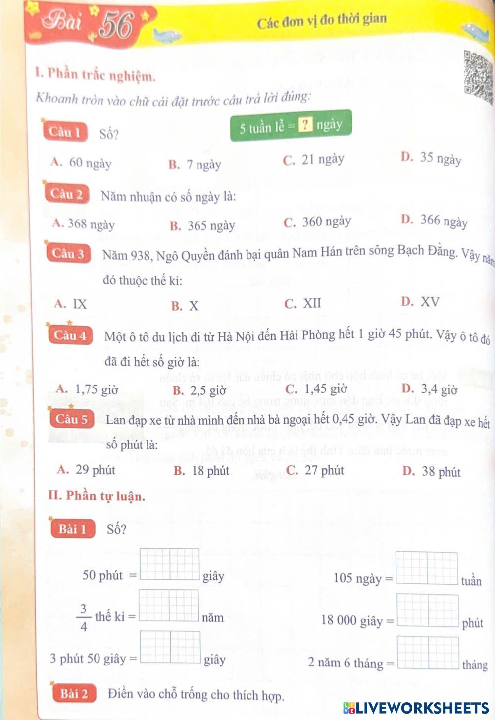 Created byBùi Thị Ngát Math Elementary 5th grade Time and Money Vietnamese Author's Instructions Đọc kĩ đề bài và thực hiện My Google Classroom Courses × 0 classes selected (0 students total) Quick Access Select all classes (0 classes) All Classes Loading courses... Cancel Share Share to selected Course __COURSE_NAME__ __STUDENT_NAME__ (__STUDENT_EMAIL__) Ôn tập về các đơn vị đo thời gian Download Worksheet Validation Check my answers Emails my answers to my teacher Full name Group/level School subject Teacher's email or key code Close Submit Validating worksheet... (12) Your answers have been sent to your teacher. Good luck! OK We encountered an error submitting your answers. Please try again. OK Advertisement | Go Ad Free Created byBùi Thị Ngát Math Elementary 5th grade Time and Money Vietnamese Author's Instructions Đọc kĩ đề bài và thực hiện Explore Worksheets ANPE SHEILA Math 5th grade ANPE SHEILA Time and Money - Math Ficha hardware y software Cộng, trừ số đo thời gian Math 5th grade Cộng, trừ số đo thời gian Time and Money - Math Đọc kĩ và làm theo yêu cầu MERCADILLO MEDIEVAL Math 5th grade MERCADILLO MEDIEVAL Time and Money - Math ¿Sobra o falta dinero? Realiza esta ficha para averiguar cómo es el cuenteo de monedas. ورقة قيمة العملات المعدنية 1 Math 5th grade ورقة قيمة العملات المعدنية 1 Time and Money - Math 1