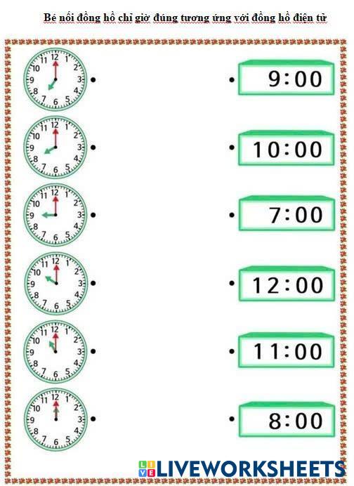 Created by tramnguyen3 Math Early Learning Pre-K Time and Money Vietnamese Author's Instructions BÉ NỐI ĐÚNG GIỜ ĐỒNG HỒ ĐIỆN TỬ My Google Classroom Courses × 0 classes selected (0 students total) Quick Access Select all classes (0 classes) All Classes Loading courses... Cancel Share Share to selected Course __COURSE_NAME__ __STUDENT_NAME__ (__STUDENT_EMAIL__) BÉ NỐI ĐỒNG HỒ CHO ĐÚNG VỚI ĐỒNG HỒ ĐIỆN TỬ Download Worksheet Validation Check my answers Emails my answers to my teacher Full name Group/level School subject Teacher's email or key code Close Submit Validating worksheet... (12) Your answers have been sent to your teacher. Good luck! OK We encountered an error submitting your answers. Please try again. OK Advertisement | Go Ad Free Created by tramnguyen3 Math Early Learning Pre-K Time and Money Vietnamese Author's Instructions BÉ NỐI ĐÚNG GIỜ ĐỒNG HỒ ĐIỆN TỬ Explore Worksheets BÉ NỐI ĐỒNG HỒ CHO ĐÚNG VỚI ĐỒNG HỒ ĐIỆN TỬ (2) Math Pre-K BÉ NỐI ĐỒNG HỒ CHO ĐÚNG VỚI ĐỒNG HỒ ĐIỆN TỬ (2) Time and Money - Math bé nối đúng giờ đồng hồ điện tử nối giờ đồng hồ Math Pre-K nối giờ đồng hồ Time and Money - Math nối giờ đúng قبل وبعد Math Pre-K قبل وبعد Time and Money - Math مفهوم قبل وبعد BÉ HỌC GIỜ ĐÚNG Math Pre-K BÉ HỌC GIỜ ĐÚNG Time and Money - Math Bé chọn giờ đúng và nối giờ tương ứng
