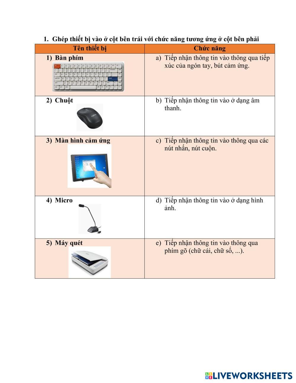 - Ghép thiết bị vào ở cột bên trái với chức năng tương ứng ở cột bên phải