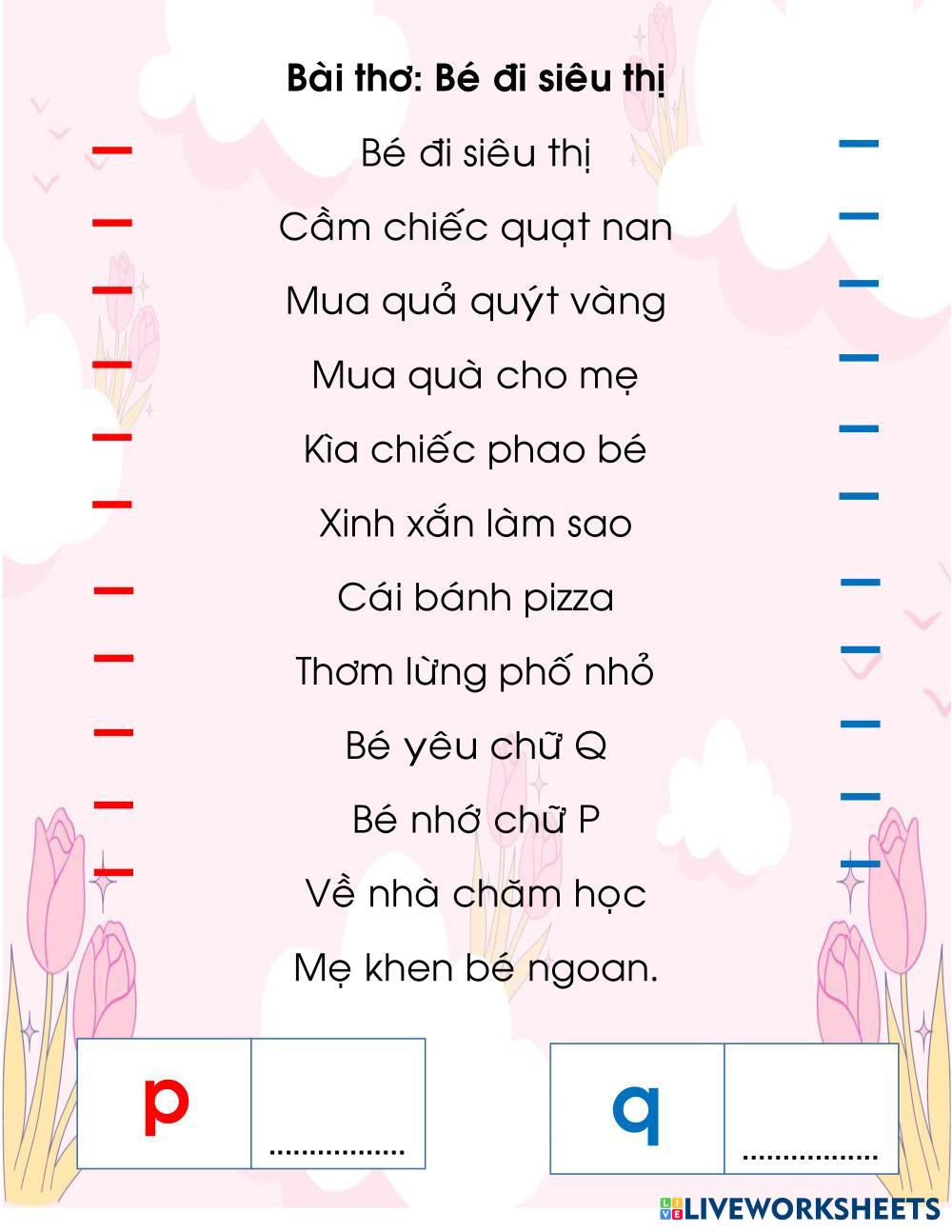 Gạch chân chữ p-q trong bài thơ