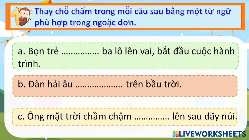 Thay chỗ chấm trong mỗi câu sau bằng một từ ngữ phù hợp