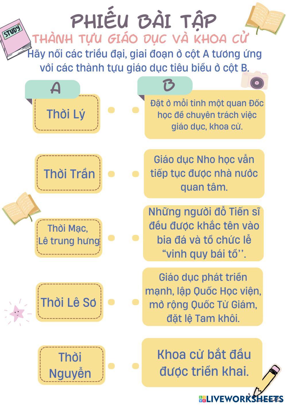 Nối thông tin cột A và côt B
