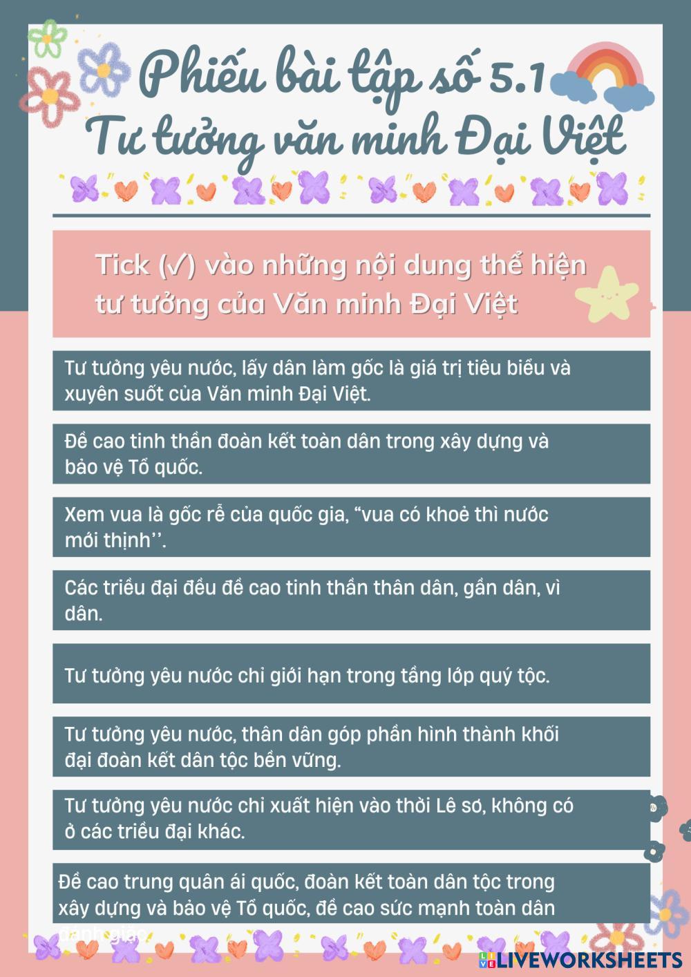 Tick vào câu trả lời đúng