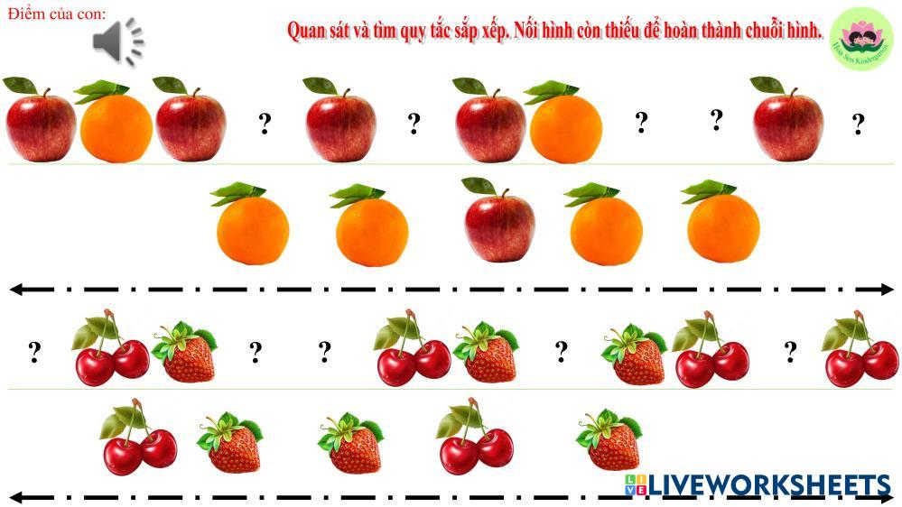 Created byNguyễn Thị Thanh Hảo Trường Mầm non Hoa Sen- Hoàn Kiếm Sắp xếp theo quy tắc Age 3-5 level: mầm non Vietnamese Author's Instructions My Google Classroom Courses × 0 classes selected (0 students total) Quick Access Select all classes (0 classes) All Classes Loading courses... Cancel Share Share to selected Course __COURSE_NAME__ __STUDENT_NAME__ (__STUDENT_EMAIL__) Sắp xếp theo quy tắc Download Worksheet Validation Check my answers Emails my answers to my teacher Full name Group/level School subject Teacher's email or key code Close Submit Validating worksheet... (12) Your answers have been sent to your teacher. Good luck! OK We encountered an error submitting your answers. Please try again. OK Advertisement | Go Ad Free Created byNguyễn Thị Thanh Hảo Trường Mầm non Hoa Sen- Hoàn Kiếm Sắp xếp theo quy tắc Age 3-5 level: mầm non Vietnamese Author's Instructions