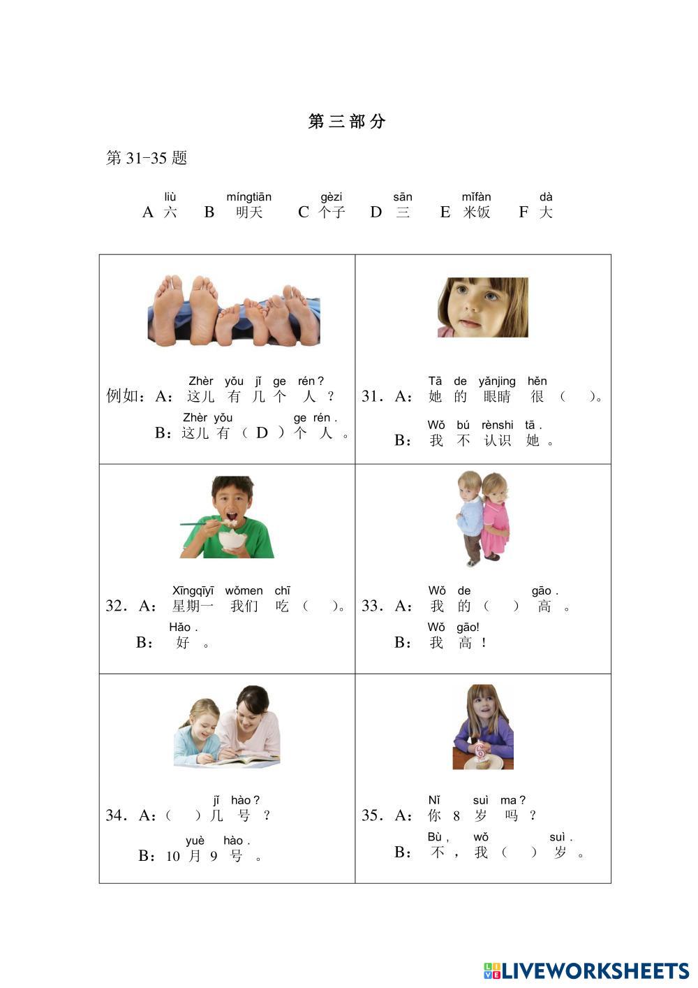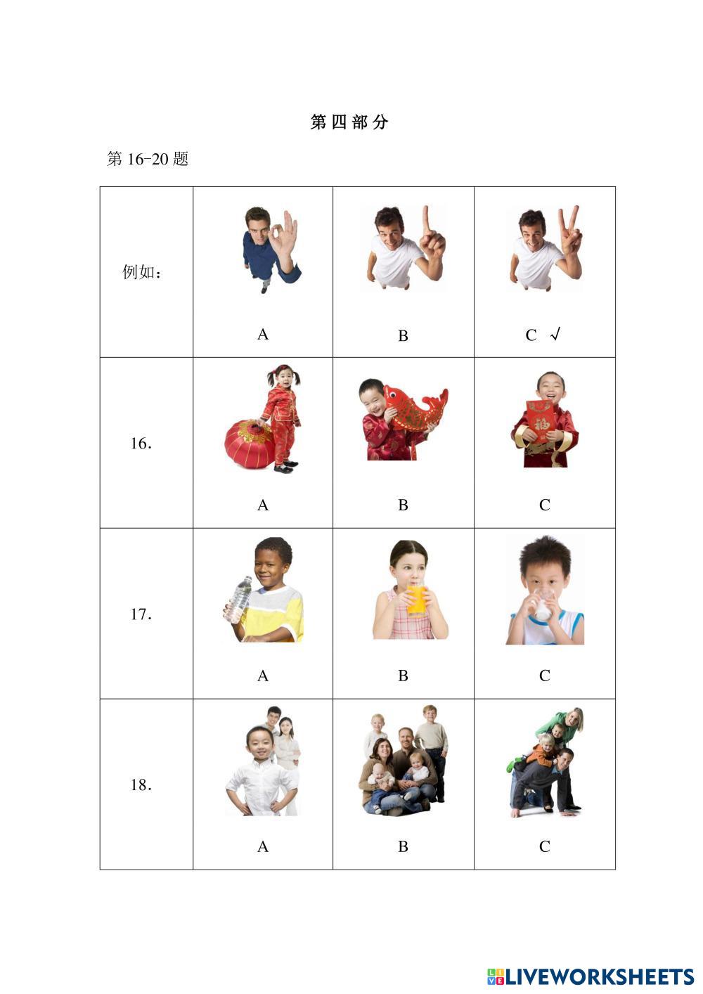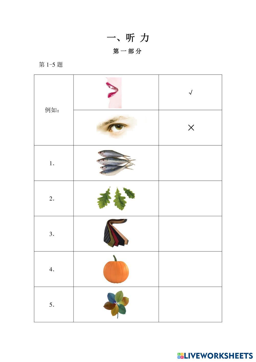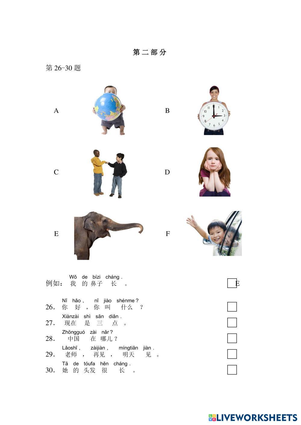 Created byNitcha T. Chinese Language (CL) Yct1 Age 5+ level: YCT 1 Chinese Author's Instructions My Google Classroom Courses × 0 classes selected (0 students total) Quick Access Select all classes (0 classes) All Classes Loading courses... Cancel Share Share to selected Course __COURSE_NAME__ __STUDENT_NAME__ (__STUDENT_EMAIL__) YCT 1 Test A-2 (Y11002) Download Worksheet Validation Check my answers Emails my answers to my teacher Full name Group/level School subject Teacher's email or key code Close Submit Validating worksheet... (12) Your answers have been sent to your teacher. Good luck! OK We encountered an error submitting your answers. Please try again. OK Advertisement | Go Ad Free Created byNitcha T. Chinese Language (CL) Yct1 Age 5+ level: YCT 1 Chinese Author's Instructions