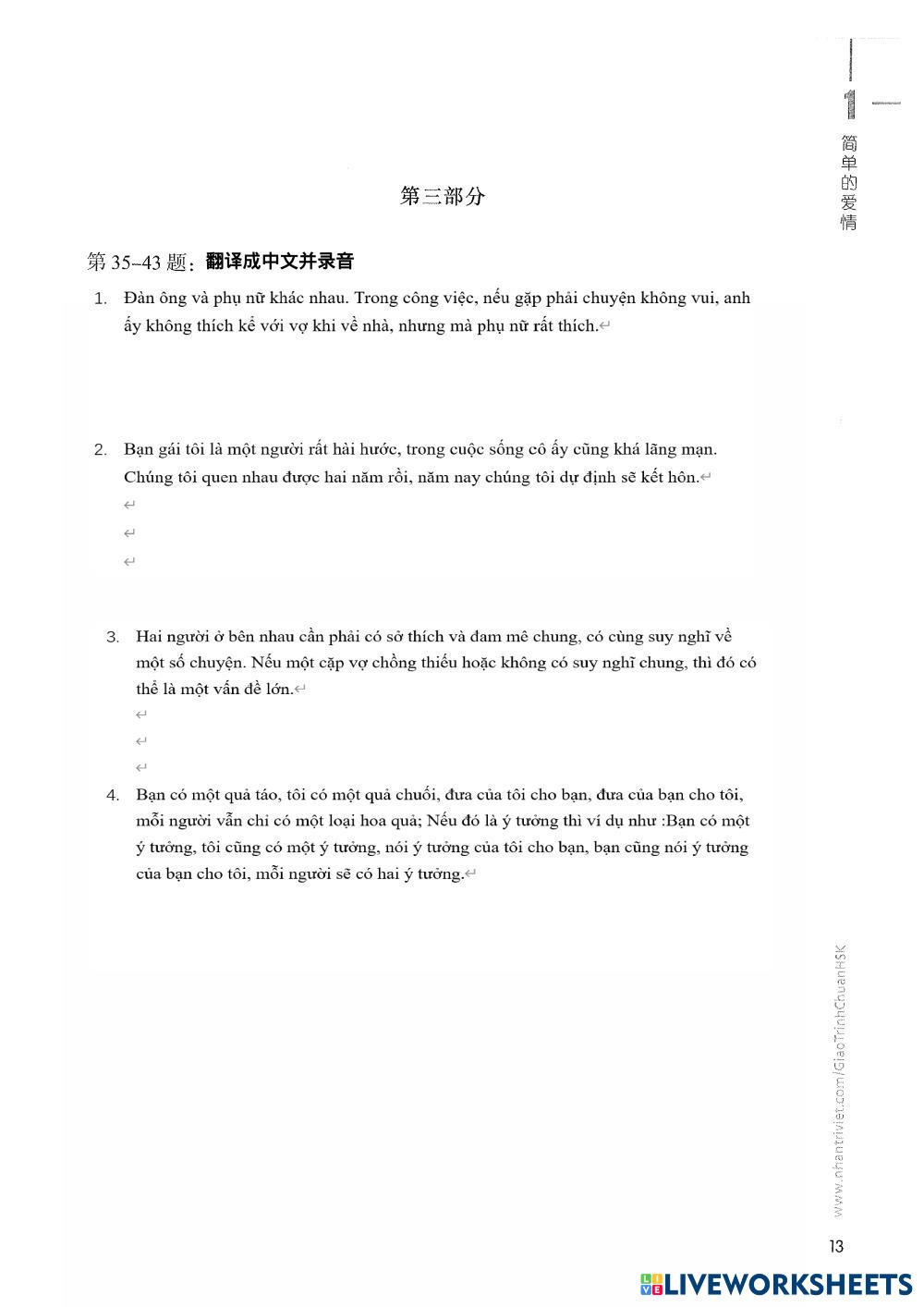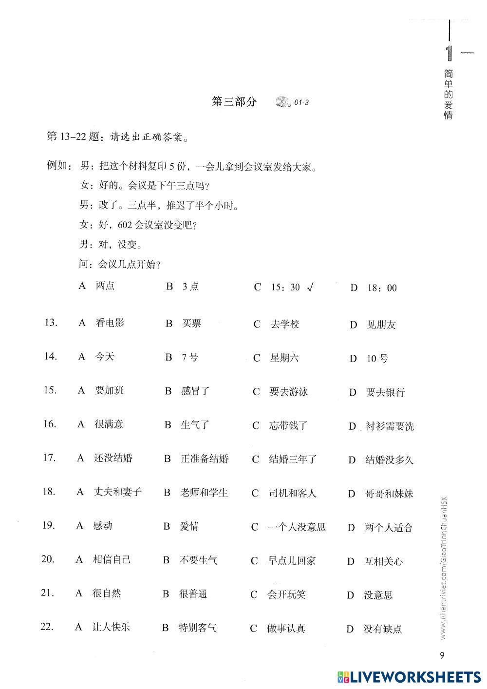 Created byHoang Thi Xuan English Language High School 12th grade Research Chinese Author's Instructions 第一课 简单的爱情 My Google Classroom Courses × 0 classes selected (0 students total) Quick Access Select all classes (0 classes) All Classes Loading courses... Cancel Share Share to selected Course __COURSE_NAME__ __STUDENT_NAME__ (__STUDENT_EMAIL__) 第一课 简单的爱情 Download Worksheet Validation Check my answers Emails my answers to my teacher Full name Group/level School subject Teacher's email or key code Close Submit Validating worksheet... (12) Your answers have been sent to your teacher. Good luck! OK We encountered an error submitting your answers. Please try again. OK Advertisement | Go Ad Free Created byHoang Thi Xuan English Language High School 12th grade Research Chinese Author's Instructions 第一课 简单的爱情 Explore Worksheets review English Language 12th grade review Research - English Language review Listening : Terengganu 2025 English Language 12th grade Listening : Terengganu 2025 Research - English Language Answer by choosing the correct answer for part 1, 2 and 3. For part 4, fill in the blanks with a suitable word. Transcript Cam 18 English Language 12th grade Transcript Cam 18 Research - English Language các em bật file nghe và điền vào chỗ trống -> CHỤP ẢNH kết quả bài làm cho cô nhé 第二课 真正的朋友 English Language 12th grade 第二课 真正的朋友 Research - English Language 第二课 真正的朋友