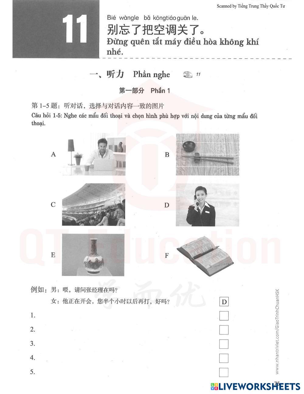 1-5: Nghe và điền A,B...F