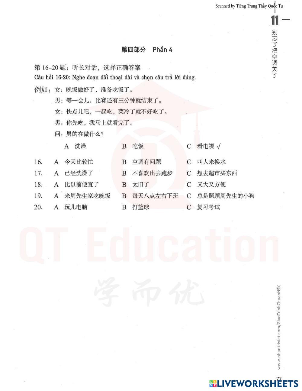 16-20: Nghe và điền A, B hoặc C