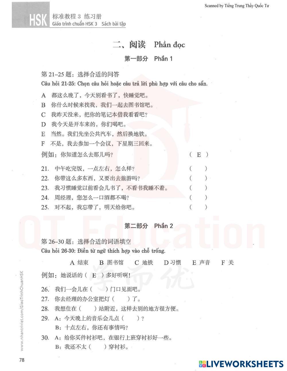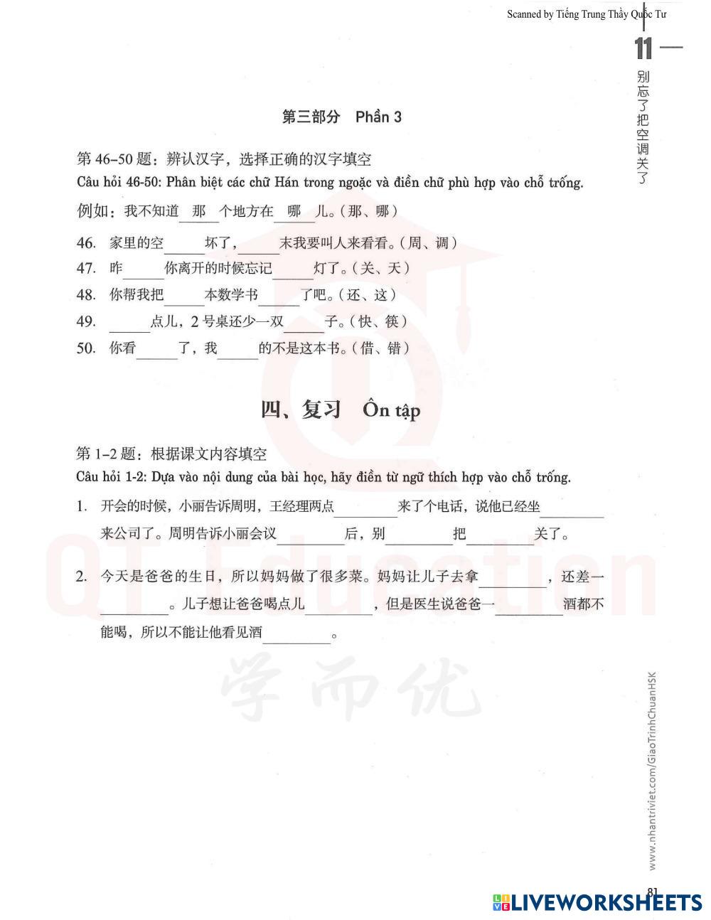 46-50: Điền chữ Hán đúng vào chỗ trống
