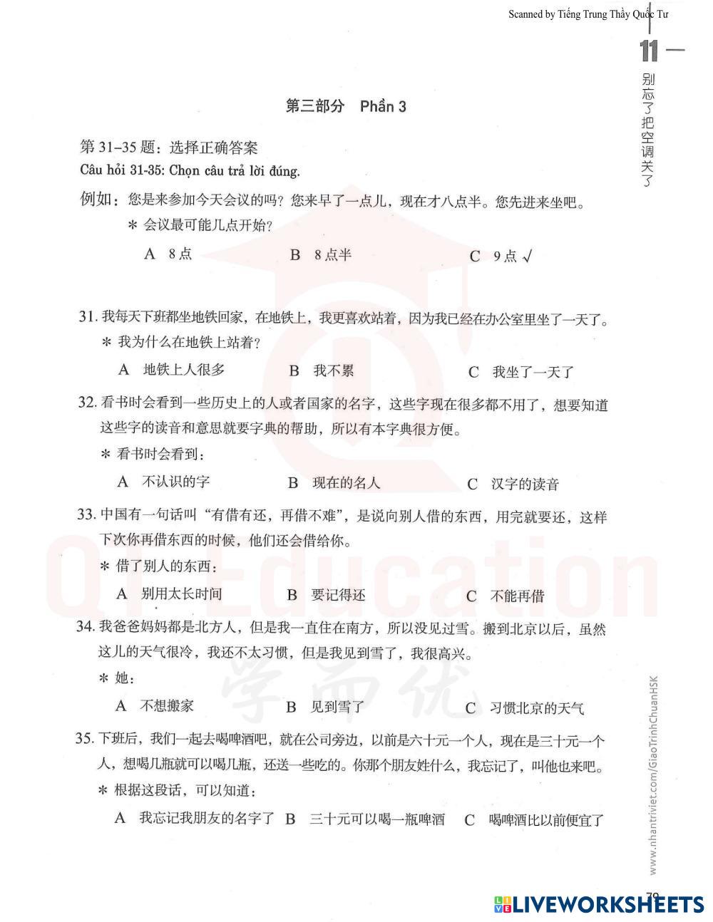 31-35: Điền A,B hoặc C vào ô trống