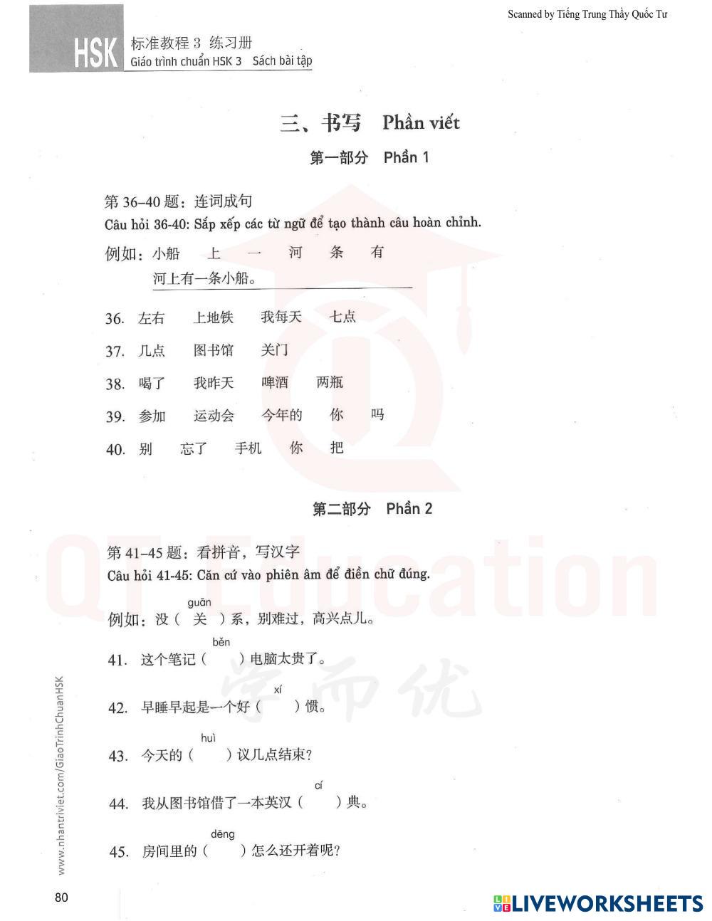 36-40: Sắp xếp từ viết thành câu hoàn chỉnh, lưu ý cuối câu có dấu câu (dấu chấm 。 hoặc dấu hỏi ? )