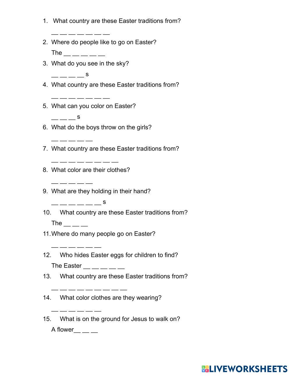 Created by 15282 English Language Middle School 8th grade Vocabulary Chinese Author's Instructions 分工寫,不用每個人都填完,一組為單位把它寫完,寫完把全組的iPads給Teacher Cori看 My Google Classroom Courses × 0 classes selected (0 students total) Quick Access Select all classes (0 classes) All Classes Loading courses... Cancel Share Share to selected Course __COURSE_NAME__ __STUDENT_NAME__ (__STUDENT_EMAIL__) Easter around the world Download Worksheet Validation Check my answers Emails my answers to my teacher Full name Group/level School subject Teacher's email or key code Close Submit Validating worksheet... (12) Your answers have been sent to your teacher. Good luck! OK We encountered an error submitting your answers. Please try again. OK Advertisement | Go Ad Free Created by 15282 English Language Middle School 8th grade Vocabulary Chinese Author's Instructions 分工寫,不用每個人都填完,一組為單位把它寫完,寫完把全組的iPads給Teacher Cori看 Explore Worksheets Liar English Language 8th grade Liar Vocabulary - English Language Fill IELTS L1_Liveworksheet 26_Grammar & Listening_Comparisons English Language 8th grade IELTS L1_Liveworksheet 26_Grammar & Listening_Comparisons Vocabulary - English Language Students finish this exercise. IELTS L1_Liveworksheet 25_Vocab and listening English Language 8th grade IELTS L1_Liveworksheet 25_Vocab and listening Vocabulary - English Language Students finish this worksheet. Som Tum Thai English Language 8th grade Som Tum Thai Vocabulary - English Language Exercise 1