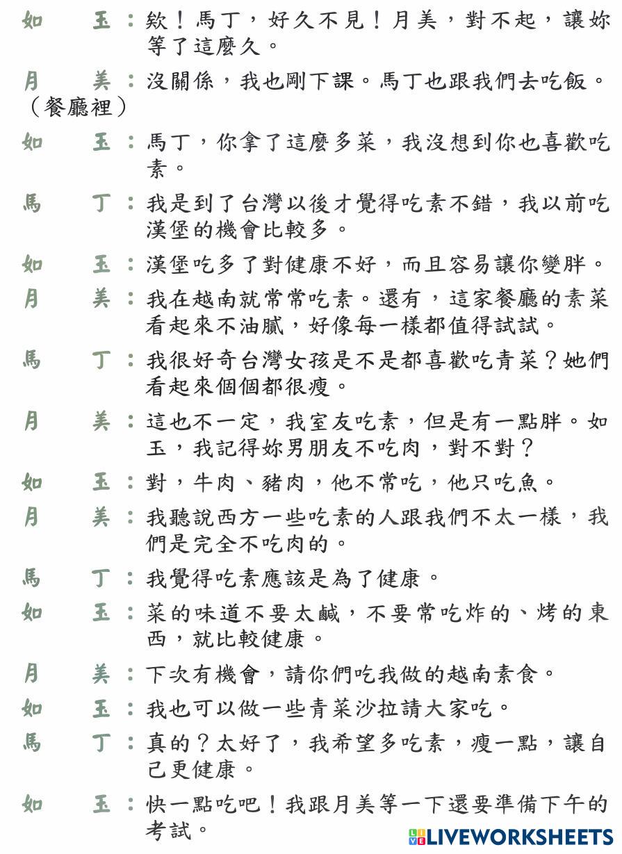 Created by yangsam888999 English Language High School 9th grade Writing Chinese Author's Instructions good learn My Google Classroom Courses × 0 classes selected (0 students total) Quick Access Select all classes (0 classes) All Classes Loading courses... Cancel Share Share to selected Course __COURSE_NAME__ __STUDENT_NAME__ (__STUDENT_EMAIL__) 第十二課 Download Worksheet Validation Check my answers Emails my answers to my teacher Full name Group/level School subject Teacher's email or key code Close Submit Validating worksheet... (12) Your answers have been sent to your teacher. Good luck! OK We encountered an error submitting your answers. Please try again. OK Advertisement | Go Ad Free Created by yangsam888999 English Language High School 9th grade Writing Chinese Author's Instructions good learn Explore Worksheets Worksheet 9 - Grade 9 English Language 9th grade Worksheet 9 - Grade 9 Writing - English Language Bác Huyền Worksheet 8 - Grade 9 English Language 9th grade Worksheet 8 - Grade 9 Writing - English Language Bác Huyền Analiza el esquema de rima English Language 9th grade Analiza el esquema de rima Writing - English Language Revisa los versos que riman entre sí y establece el esquema de rima de estas estrofas. Analiza el tipo de rima English Language 9th grade Analiza el tipo de rima Writing - English Language Revisa la teoría e indica si la rima de estos versos es consonante o asonante.