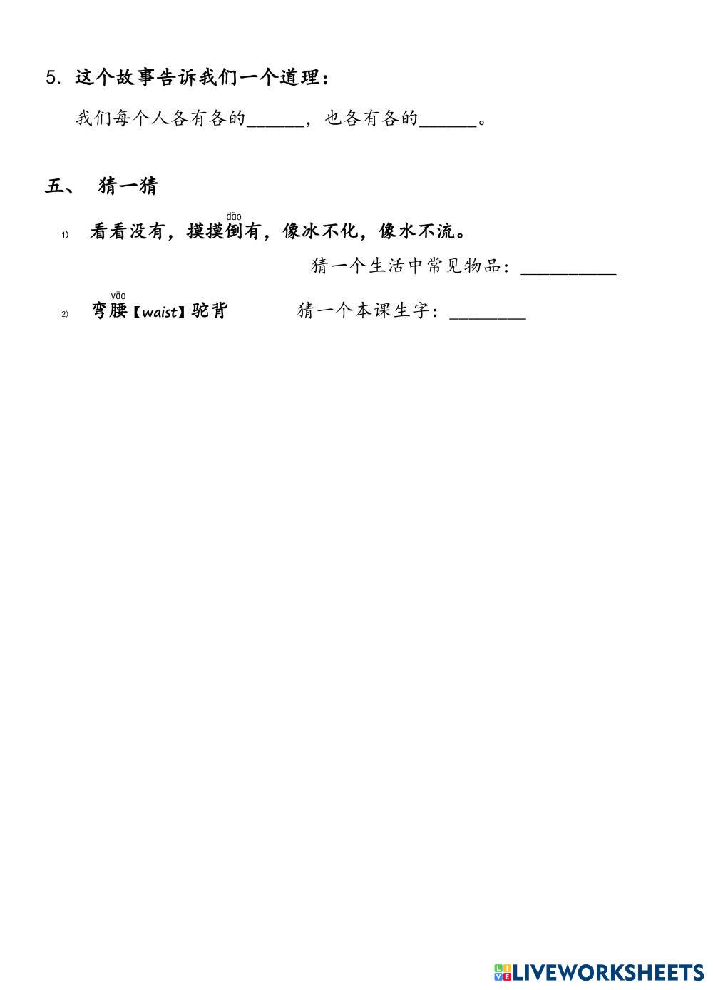 Created byMin Miao ESL A2 Reading Chinese Author's Instructions G3 My Google Classroom Courses × 0 classes selected (0 students total) Quick Access Select all classes (0 classes) All Classes Loading courses... Cancel Share Share to selected Course __COURSE_NAME__ __STUDENT_NAME__ (__STUDENT_EMAIL__) G3-3-2《爸爸的老师》(下)1 Download Worksheet Validation Check my answers Emails my answers to my teacher Full name Group/level School subject Teacher's email or key code Close Submit Validating worksheet... (12) Your answers have been sent to your teacher. Good luck! OK We encountered an error submitting your answers. Please try again. OK Advertisement | Go Ad Free Created byMin Miao ESL A2 Reading Chinese Author's Instructions G3 Explore Worksheets Prepare 7 U15 L3 Reading ESL A2 Prepare 7 U15 L3 Reading Reading - ESL Read the blog and do the tasks. Wider world 2 (9.3) ESL A2 Wider world 2 (9.3) Reading - ESL Exploring nature Talking Sport A2 Reader Multiple Matching ESL A2 Talking Sport A2 Reader Multiple Matching Reading - ESL Read the three texts and match them with the questions below. Understanding Characters ESL A2 Understanding Characters Reading - ESL Understanding Characters